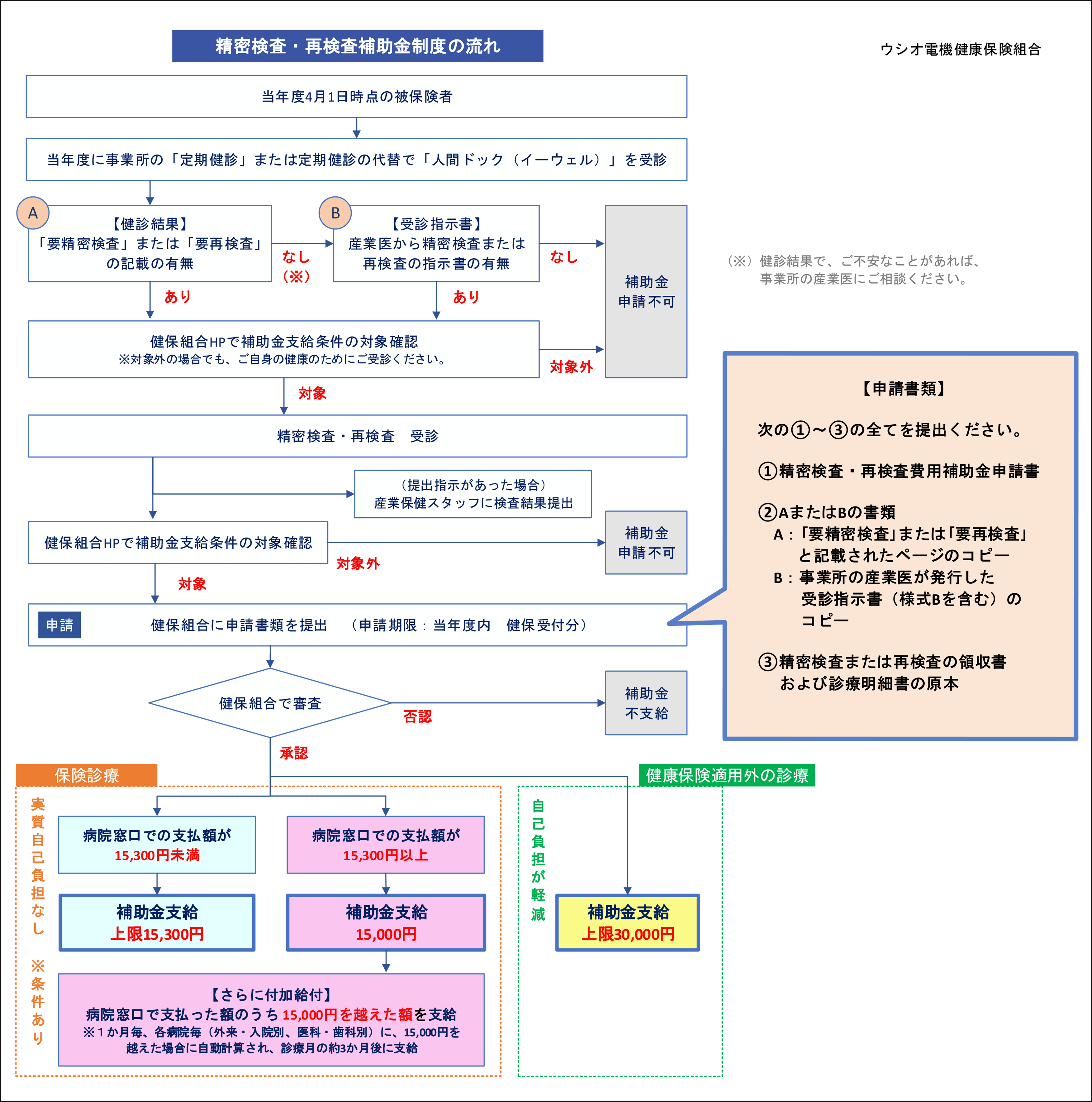 健診結果に基づき、精密検査または再検査の受診費用について、補助金を支給します。
